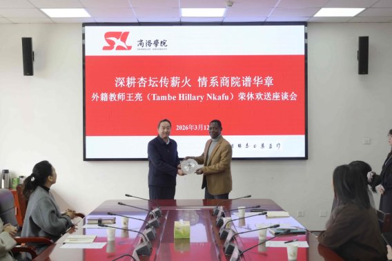 3月12日上午,学校为外籍教师王亮(Tambe Hillary Nkafu)举办荣休欢送座谈会,副校长张向东,教务处、人事处、国际合作与交流处相关负责人及人文学院师生代表参会,会议由国际合作与交流处处长张建芳主持。